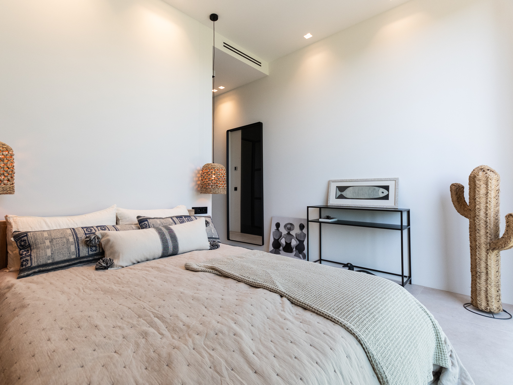 Shangri La has 4 bedrooms, all with en-suite bathrooms and an additional guest toilet. You enter the villa on the second floor, where you have a breathtaking view of the sea and the castle in the harbor of Ibiza. From here you enter the open plan living area with a large kitchen as well as a guest toilet and 2 bedrooms, both with en-suite bathroom. The living and kitchen area on the first floor offers fantastic indoor and outdoor space.